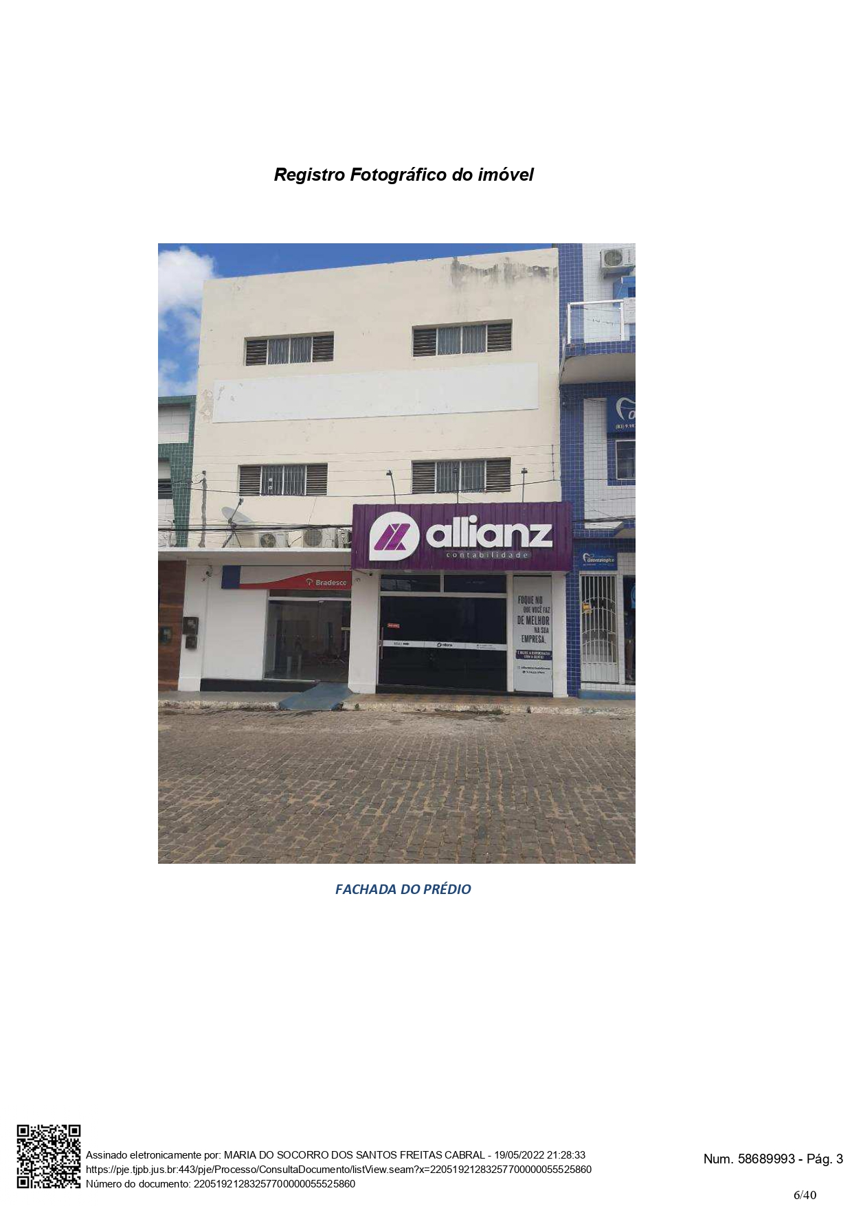 01 (um) – Prédio Comercial, situado na Rua Francisco Maia, s/n, Centro, Catolé do Rocha/PB, em um terreno medindo 9,80 metros de frente por 22,30 metros de fundos, e com uma área construída de 218,54 m2, em 02 (dois) pavimentos, sendo térreo e primeiro andar. Matrícula nº 2719.